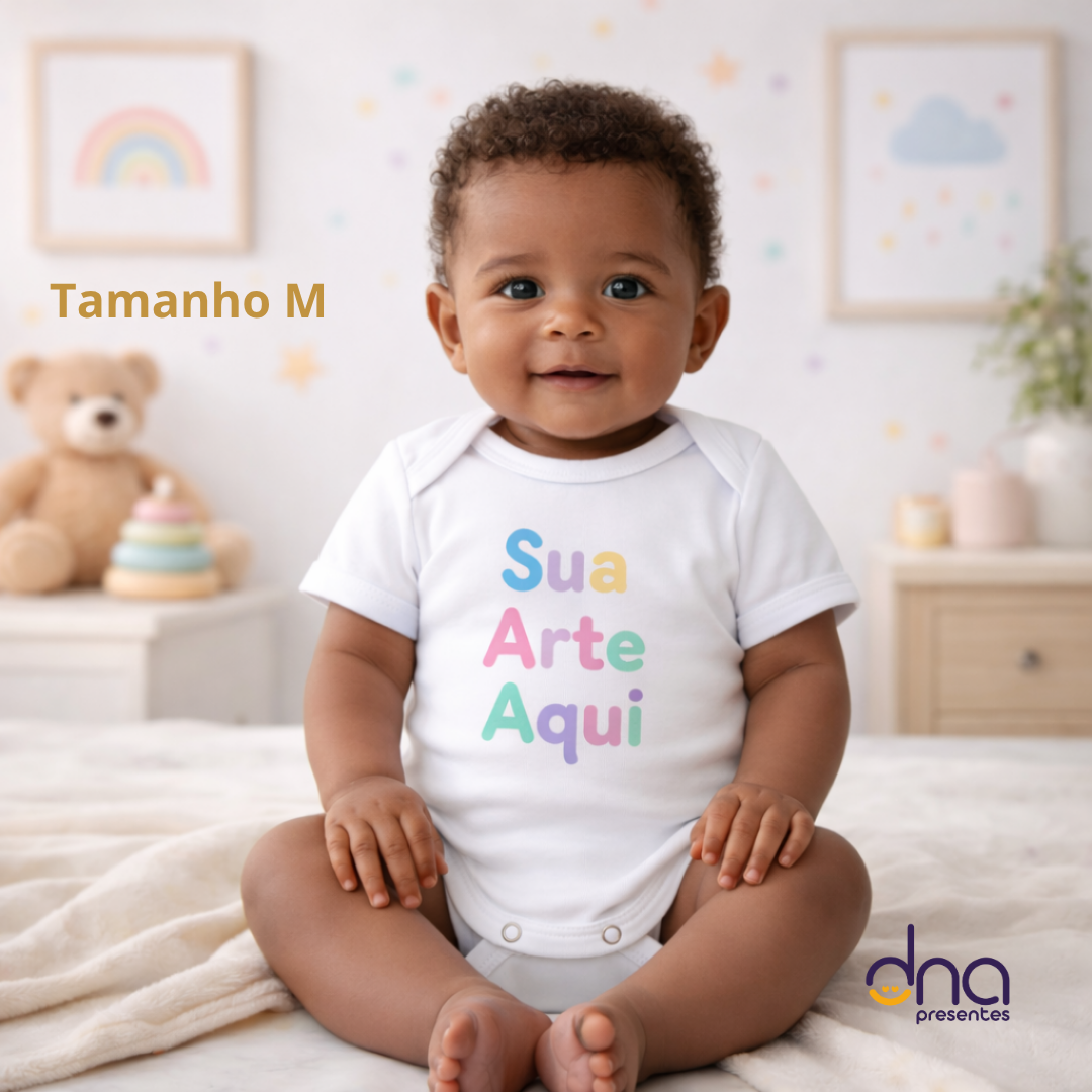 Body Bebê Personalizado Branco Poliéster Elastano Manga Curta - Tamanho M