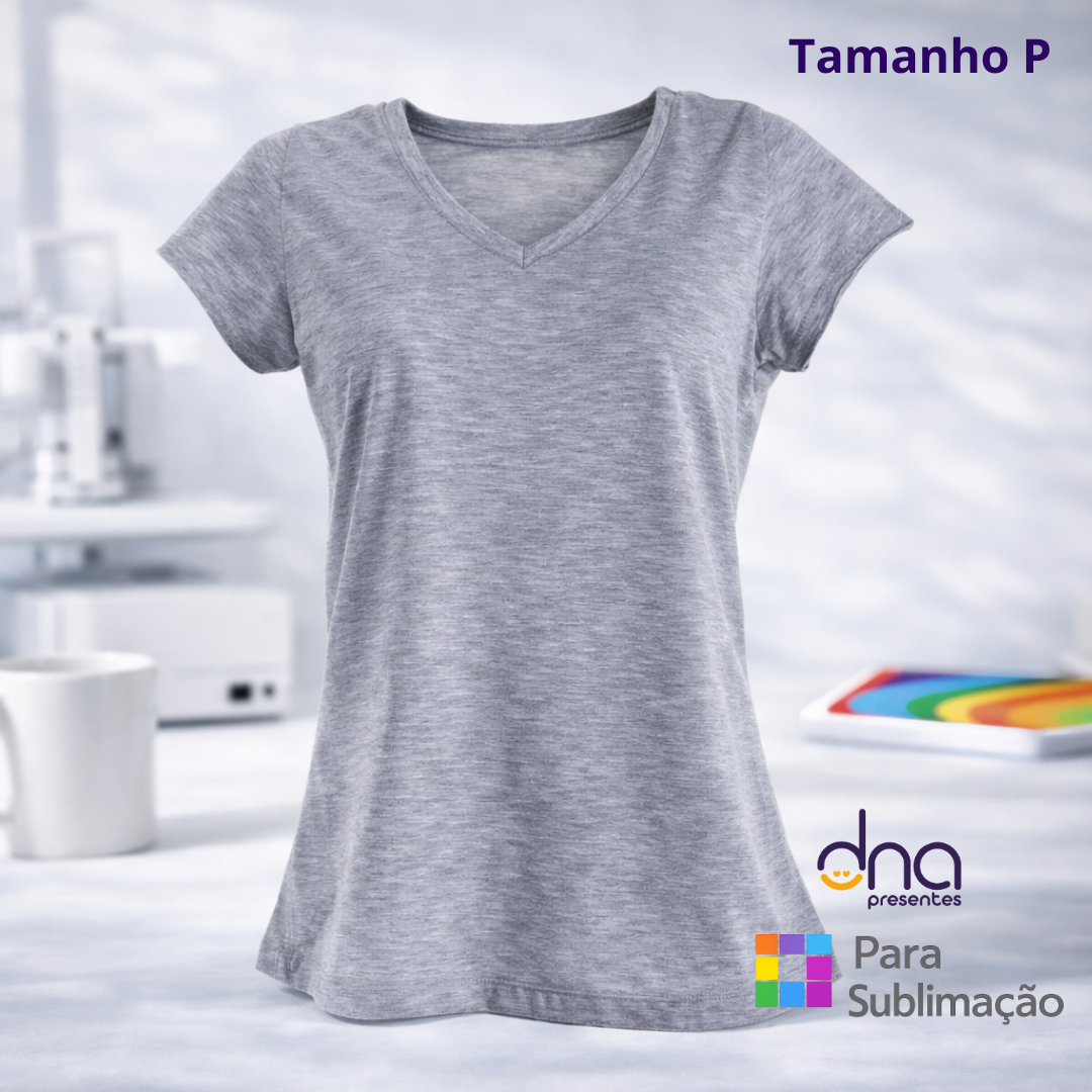 Camiseta Gola V Feminina Cinza Adulto Poliester GG