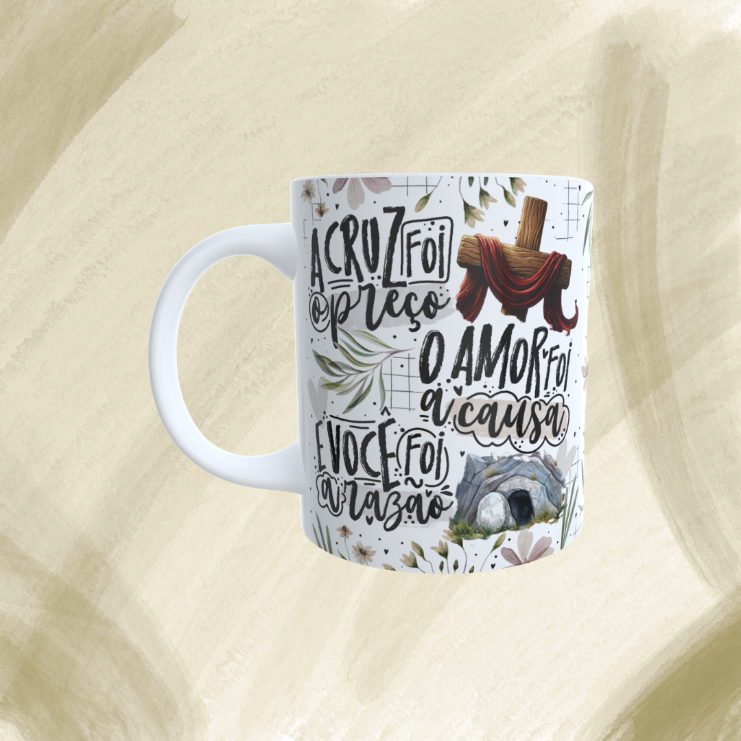 Caneca Personalizada - A cruz foi o preço , o amor foi a causa, e você foi a razão.