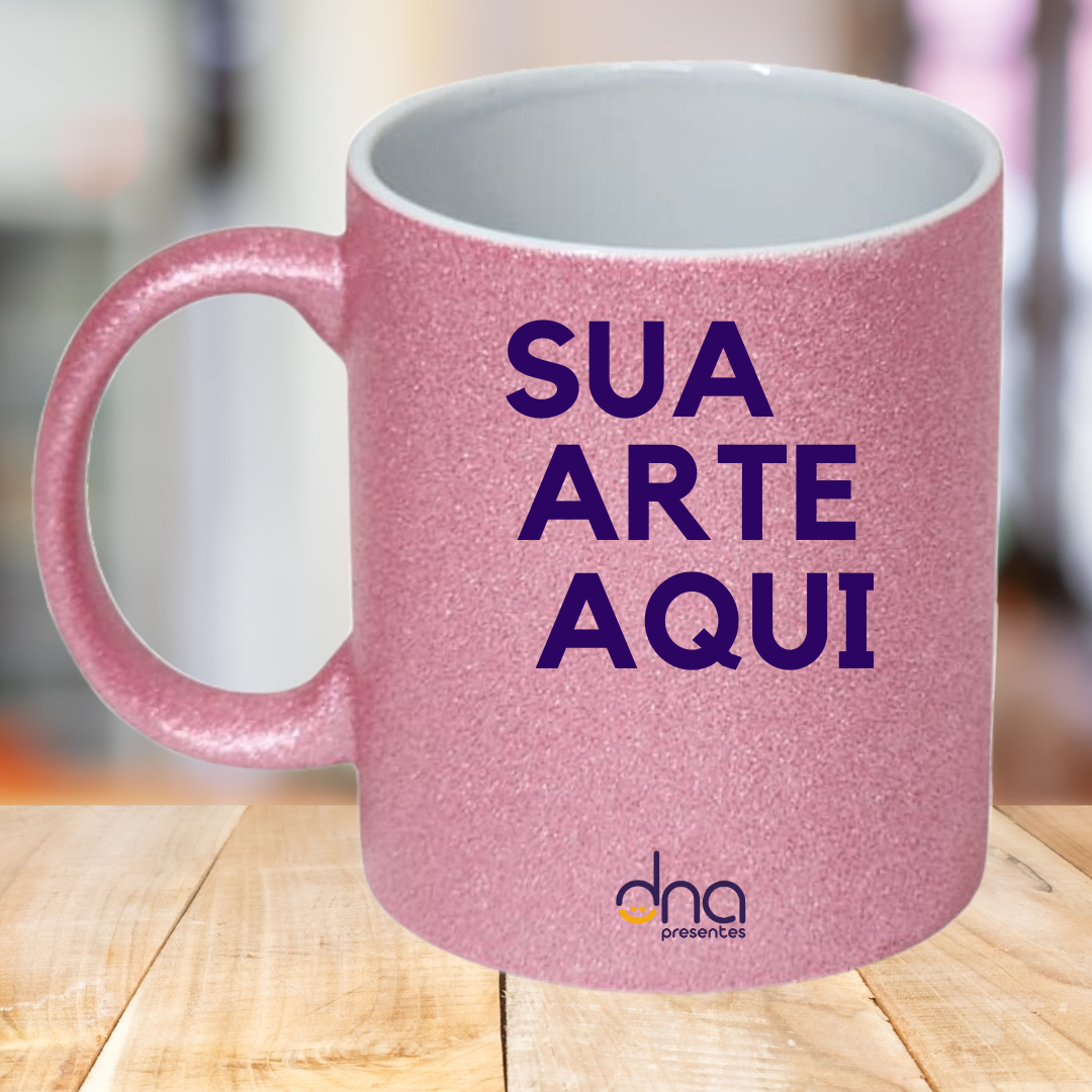 Caneca Personalizada Glitter Rosa "Sua Arte Aqui"