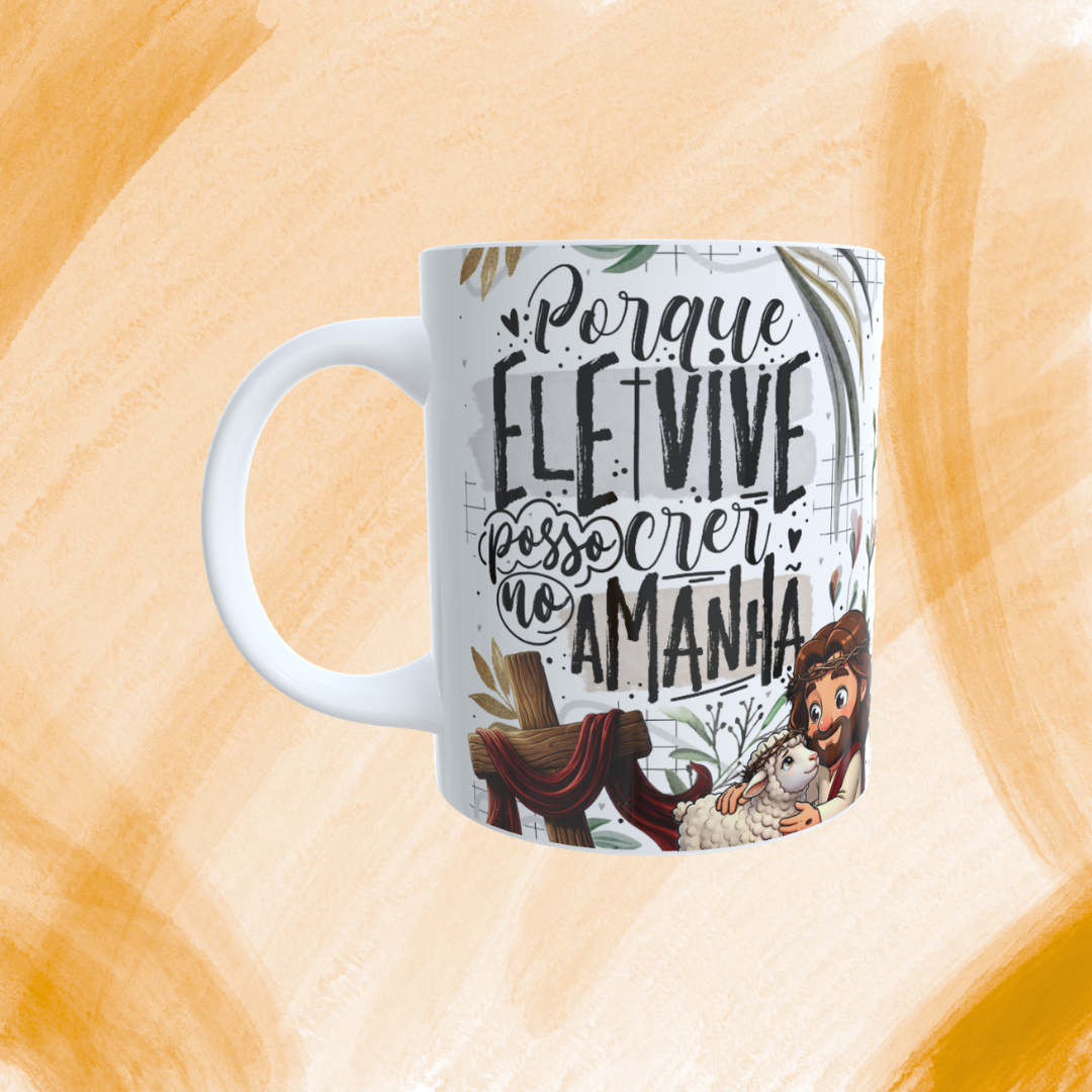 Caneca Personalizada - Porque ele vive posso crer no amanhã