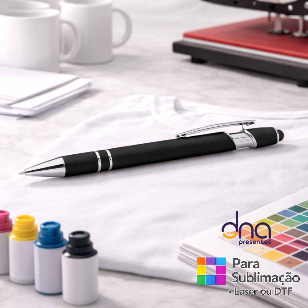 Caneta de Metal Preta Brilhante com Detalhes Prata
