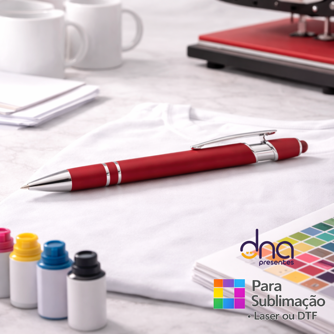 Caneta de Metal Brilhante com Detalhes Prata - Vermelha - Para Sublimação