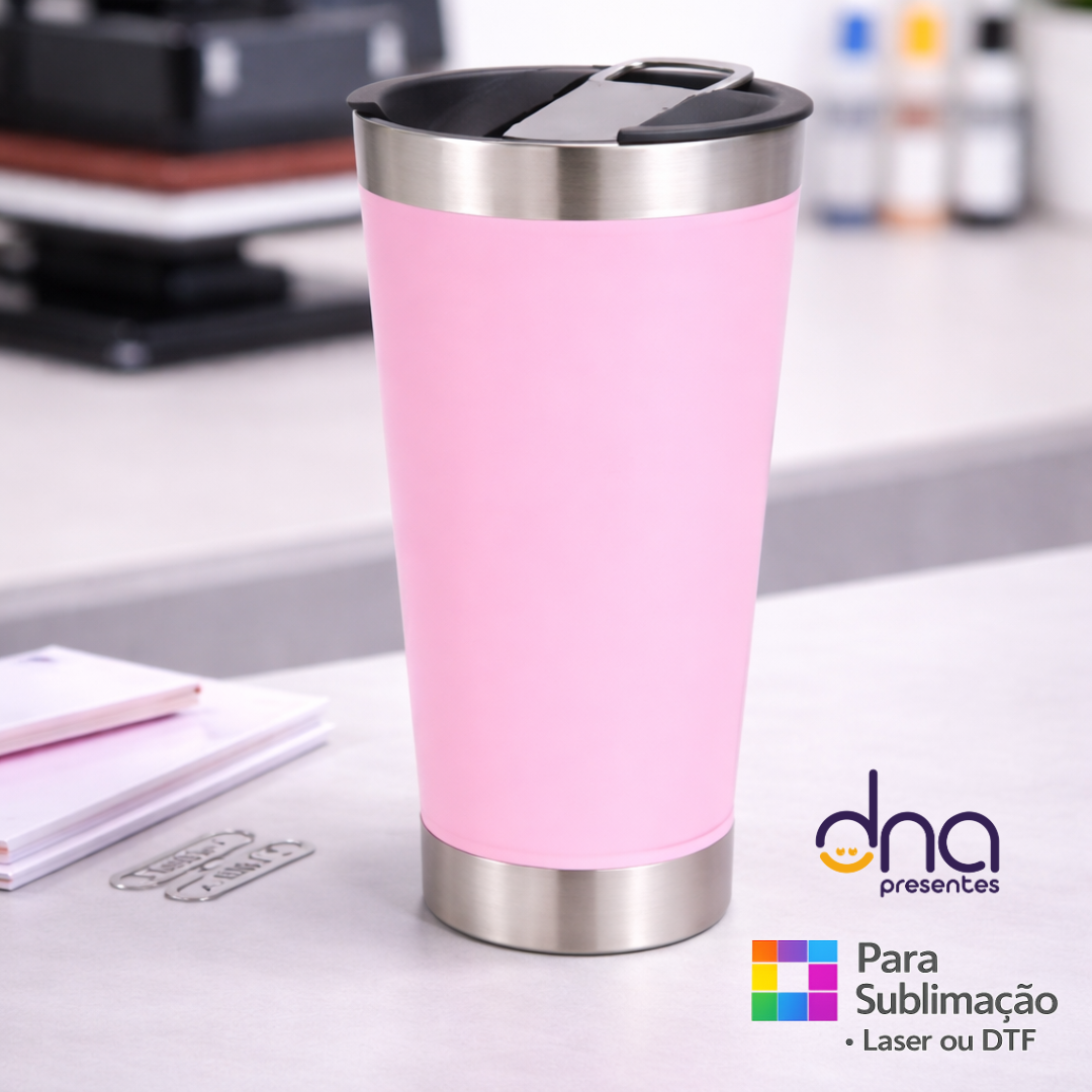 Copo Térmico com Abridor 473ml - Cor Rosa