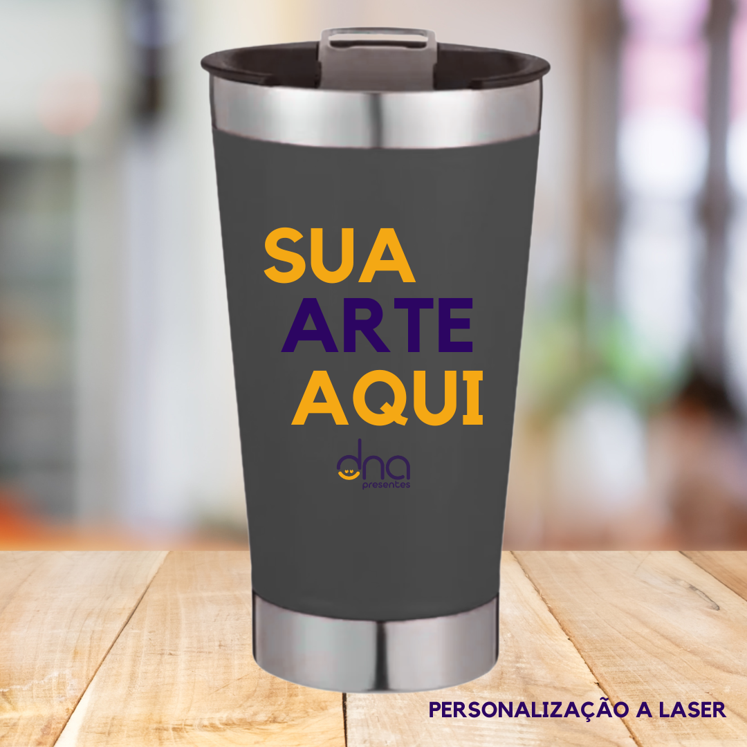 Copo Térmico Personalizado Laser Aço Inox com Abridor Acrílica 473ml- Preto fosco - Sua Arte Aqui