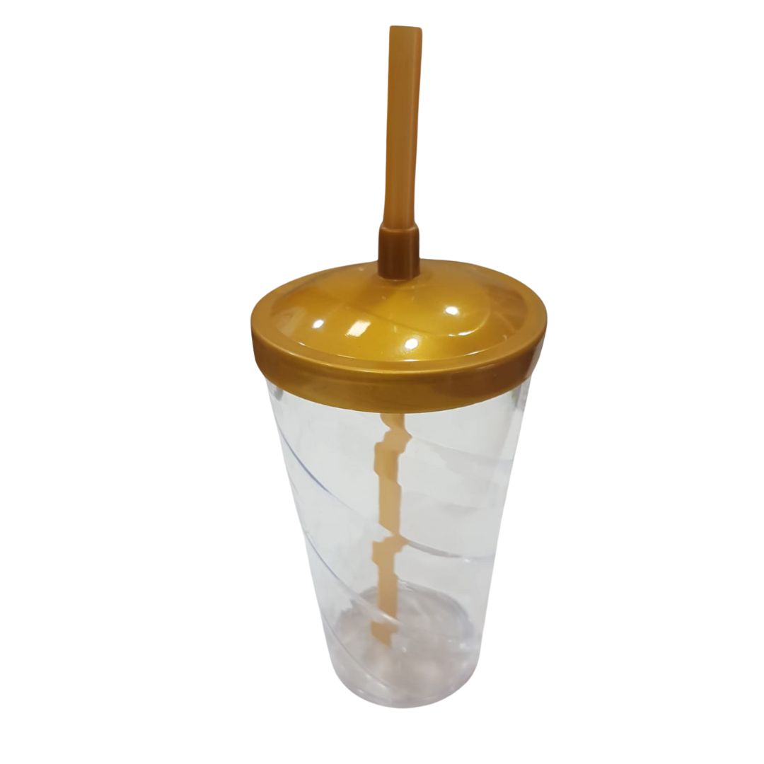 Copo Twister 500ml Transparente com tampa e canudo Dourado