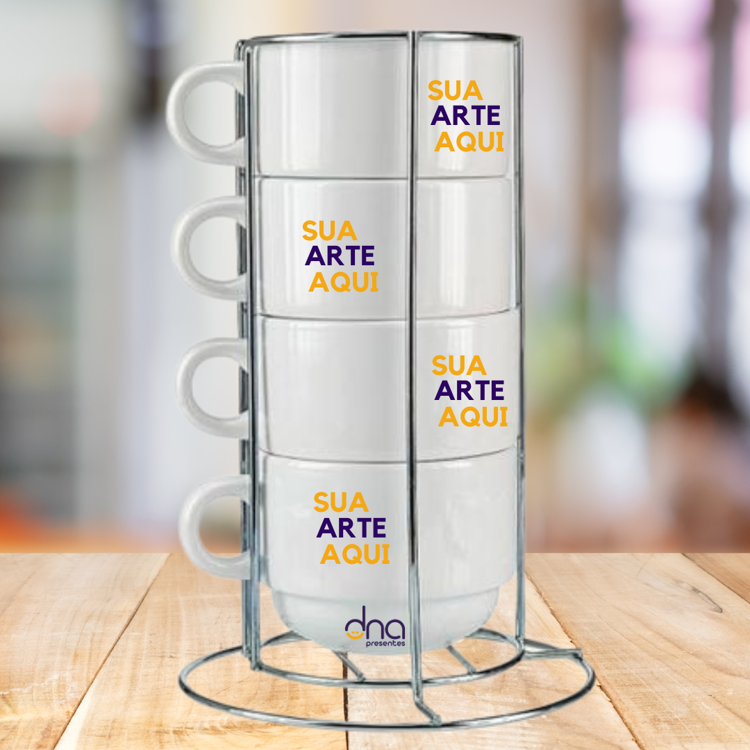 Torre de 4 Xícaras Personalizadas Brancas 150ml "Sua Arte Aqui"